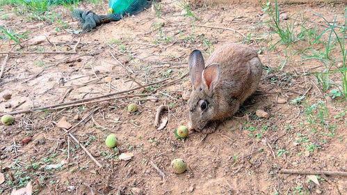 桃树下吃瓜的兔子视频,兔子悠闲品鉴美食时光
